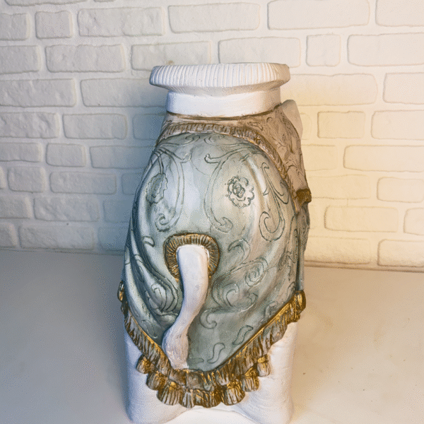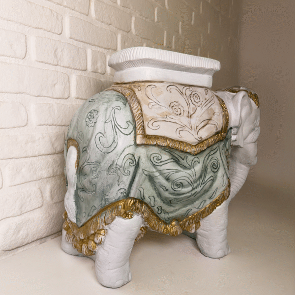 Majestic Elephant Sehpa, klasik ve modern dekorasyon tarzlarına uyum sağlar. İster bir yan sehpa olarak kullanın, ister giriş alanınızda dikkat çekici bir obje olarak sergileyin; bulunduğu her ortamda zarafetiyle öne çıkar.