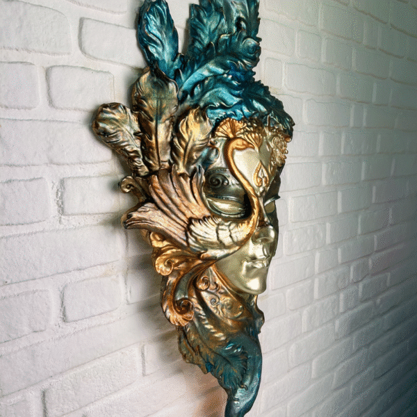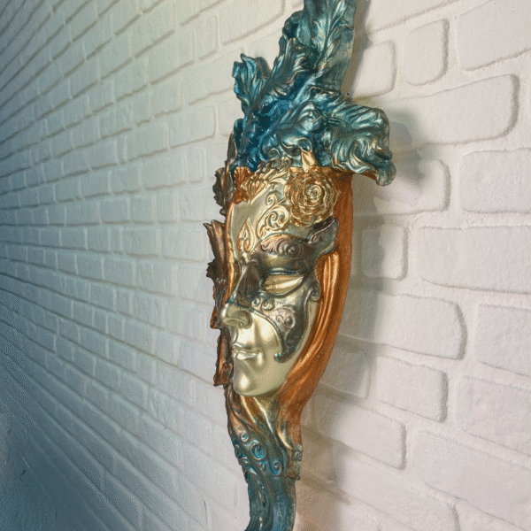 Tiyatro, gizem ve zarafeti bir araya getiren Venedik maskesi temalı kadın yüzü duvar heykeli, yaşam alanlarınıza dramatik ve göz alıcı bir atmosfer katıyor.